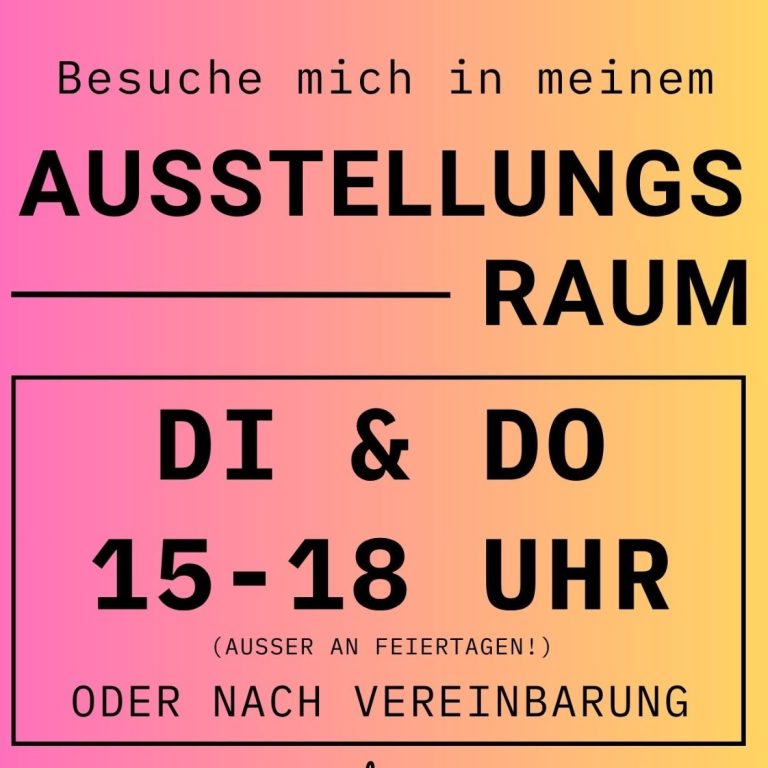 Mein Ausstellungsraum wartet darauf, von dir entdeckt zu werden. Ab Dezember 2025 ist Dieser jeden Dienstag und Donnerstag von 15 bis 18 Uhr für dich geöffnet. (Außer Feiertags)